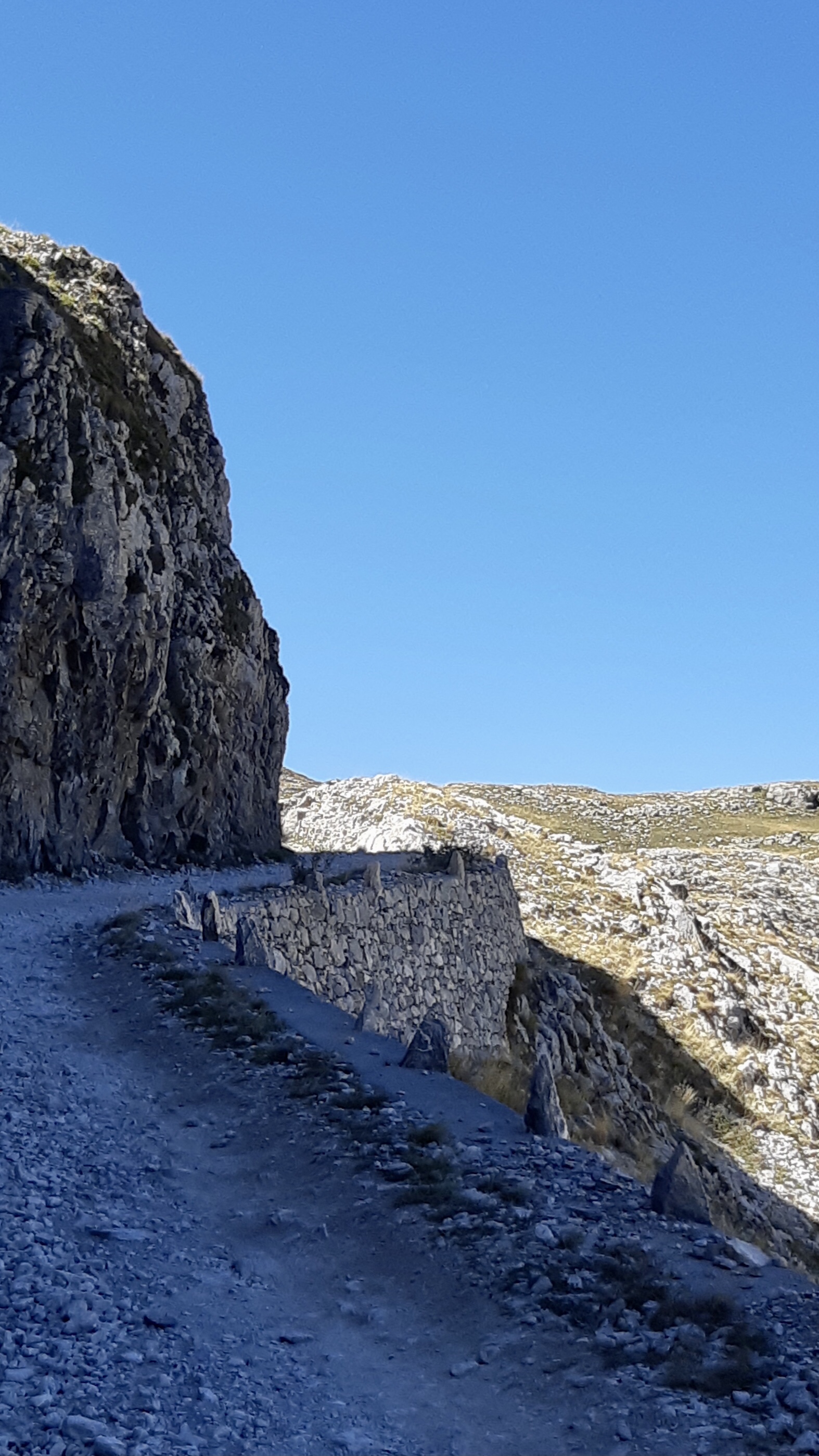 Prendiamo la strada sterrata, io molto tranquillamente, e via. Il paesaggio ti ingloba, se si può dire, i turisti non mi sembrano così tanti, mi aspettavo più traffico. Pedalando, pedalando, ecco che arriva il primo problema, che colpisce Ale, quale dei due resterà un mistero per il lettore. Per tre volte la catena salta dal cambio e finisce tra telaio e cambio stesso. La terza volta, la fede vacilla, le mani si sporcano del nero della catena, il sudore scorre ancora più intenso, la ruota non si vuole sfilare…alla fine Ale riesce nella riparazione. Riparte, ancora più preoccupato di prima per un arrivo tardivo dopo il tramonto al rifugio Don Barbera, nostra meta di questa prima tappa. Proseguiamo, qualche foto, idratazione e barrette. Io voglio arrivare al tornante di tutte le foto di internet, la Boaria. Mi aspetto una curva grandissima, un po’ come il teatro Ariston visto in tv. Invece è tutta lì, piccola. Come l’Ariston se ci vai dentro. Facciamo le foto di rito. Qui arriva il secondo problema. Per risalire in bici, schiaccio la leva del freno dietro, ma la bici non sta ferma. Riprovo, uguale. Avviso gli altri del problema. Ale della catena guarda: delle sei viti che tengono il disco posteriore solidale alla ruota ne erano rimaste due, che non hanno retto e hanno spaccato la sede in cui stavano. Ecco cosa era il fischio e lo “stac” della frenata prima della Boaria. Io non perdo la fede, e arrivo più lento ancora al Don Barbera, solo con il freno anteriore.