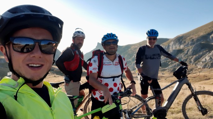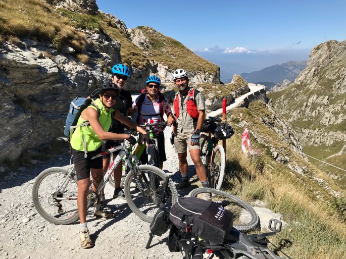 Io, dei 4, sono il meno allenato, per cui ho preso a noleggio una e-mtb. Comincio la salita con Cris, mentre Ale e Ale sono più avanti. Io sarò sempre l’ultimo per tutto il viaggio !