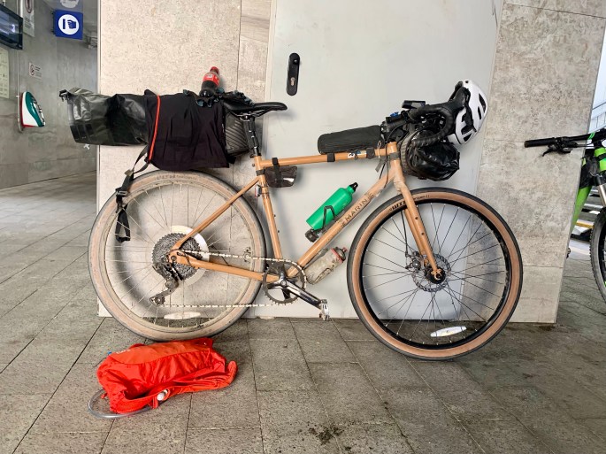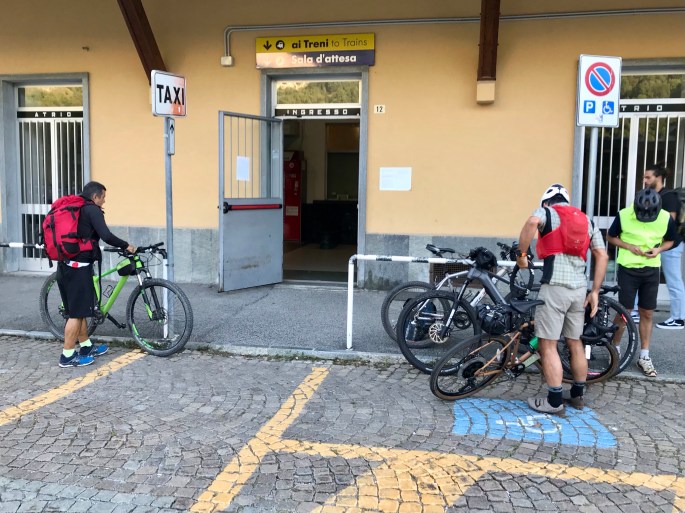 Arrivati a destinazione, visita ai bagni della stazione, una gonfiata alle gomme, poi si parte: prima imbroccando la strada sbagliata, poi quella giusta.