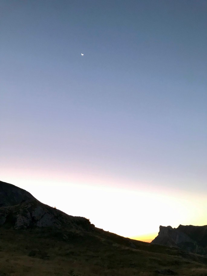 Cena prevista alle ore 19, desiderata come non mai. Andiamo in stanza, molto pulita, con le ciabatte, senza scarpe. Doccia veloce. Mi preparo il cambio per la pedalata della domenica. Il rifugio è pieno, a tavola siamo con dei ragazzi di Cairo Montenotte. Scambiamo qualche parola con loro, sono arrivati a piedi dalla Certosa di Chiusa di Pesio. Ora si cena: piccolo antipasto, riso alle ortiche, salsiccia con lenticchie e patate al forno, bunet. Tutto in razione doppia. Vino rosso abbondante. Fluidifica. Alle 21 circa arriva il buio. In camera, continuiamo a ridere e scherzare. Poi di botto io mi addormento. E così Ale della catena e Cris. Ale l’altro va alla ricerca del segnale per il telefono.
